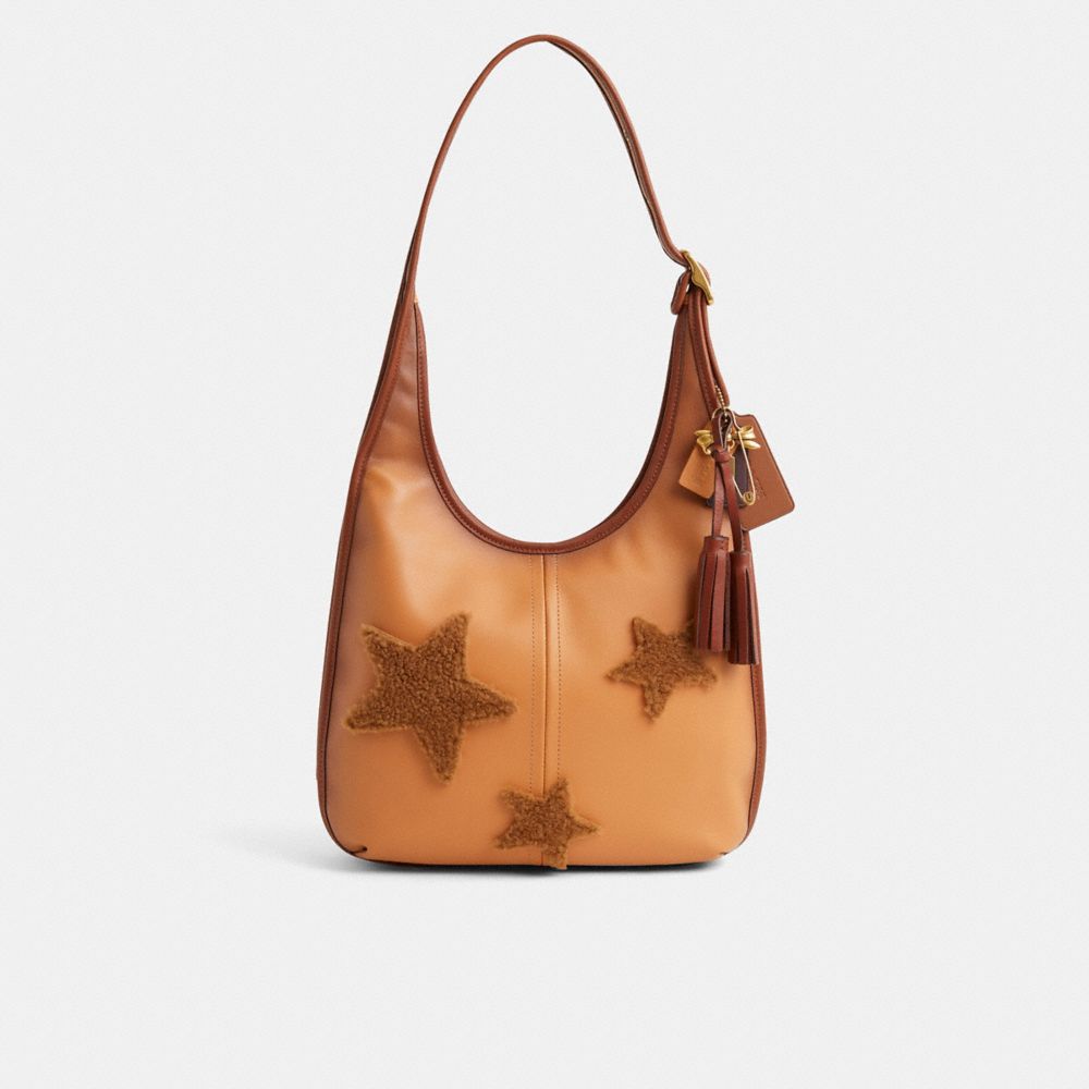 Reimagined by Eunice Chang with a star-struck motif in luxuriously soft shearling, this streamlined design has been expertly cleaned, conditioned and restored. Our talented craftspeople Jose Reyna, Fernando Gutierrez and Yngrid Pichardo Baez hand-decorated the front with tonal shearling star appliqué, replaced the binding and added a playful repurposed charm. The Ergo is part of The Coach Originals, a collection of archival-inspired bags that celebrates our legacy and authentic New York heritage. Reimagined for today, this hobo style is based on an iconic Coach silhouette introduced in the 1990s. The structured 33 features multifunction pockets for small essentials and room to hold a 15" laptop. Crafted of our buttery soft glovetanned leather, it has a wide, adjustable strap.