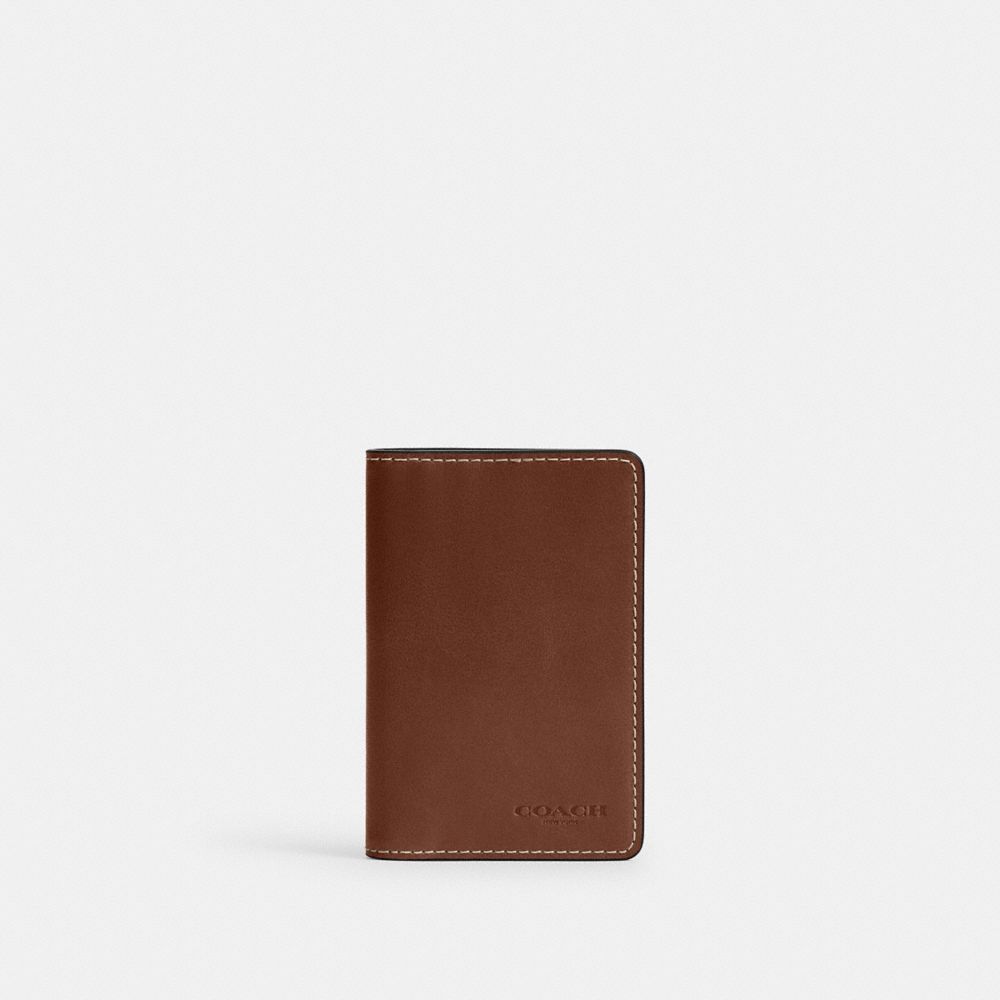 Crafted of natural grain leather with beautiful texture and soft feel, this slim bifold design functions as a minimalist wallet. It easily organizes four cards and is finished with a convenient outside slip pocket for cash or receipts.