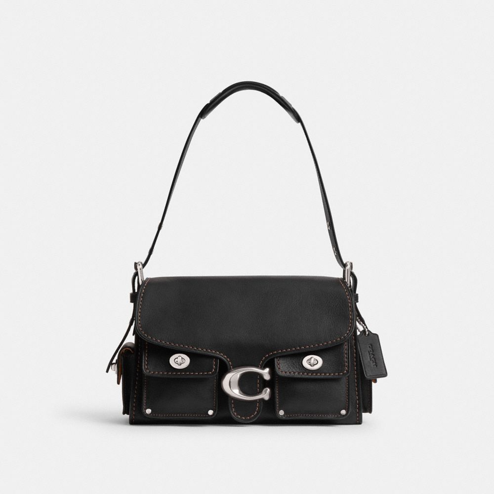 The Soft Tabby reimagines our structured take on an archival 1970s Coach design with a relaxed feel. Finished with cargo pockets detailed with our iconic turnlock closures, polished stud accents and our Signature hardware, this natural grain leather shoulder bag features pockets inside and out to organize small accessories and two straps to carry by hand, style as a short shoulder bag or wear crossbody.