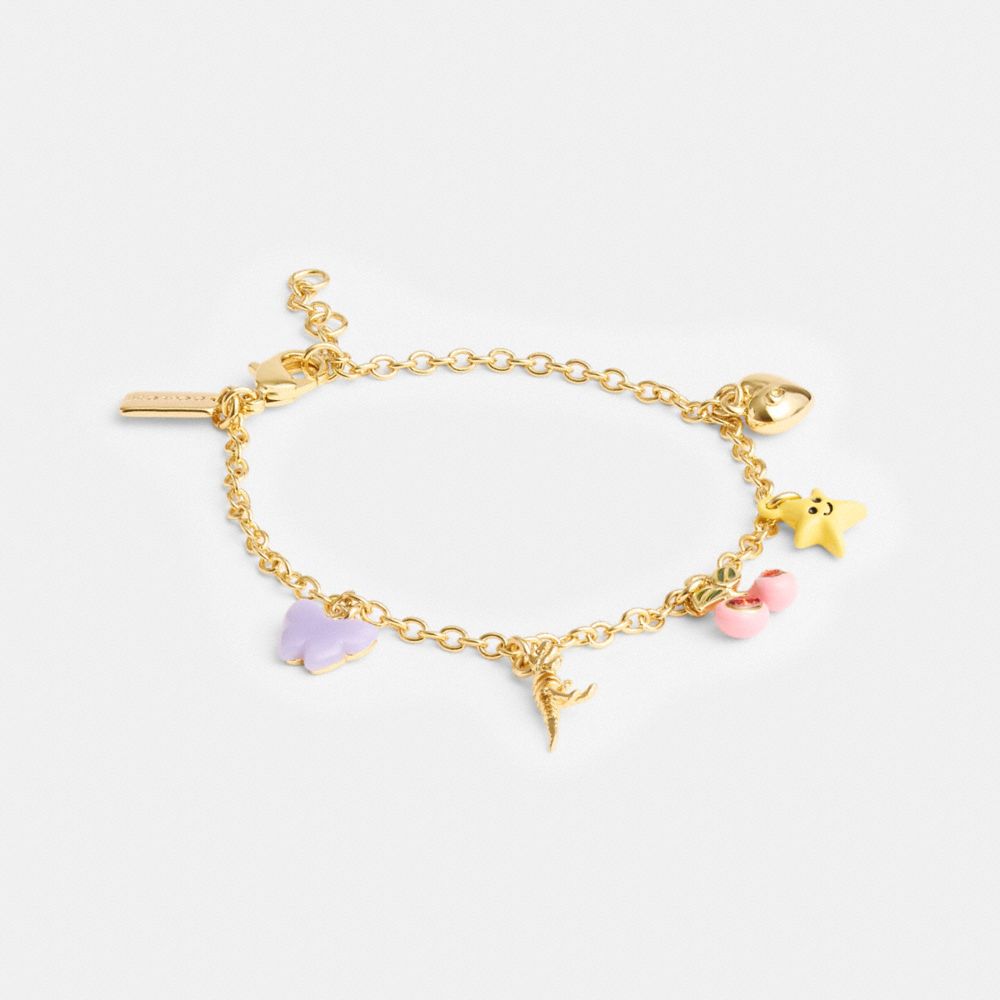Accented with sparkling crystals, playful Coach charms swing from this delicate chain bracelet. The colorful style is finished with an adjustable clasp to fit most wrists.