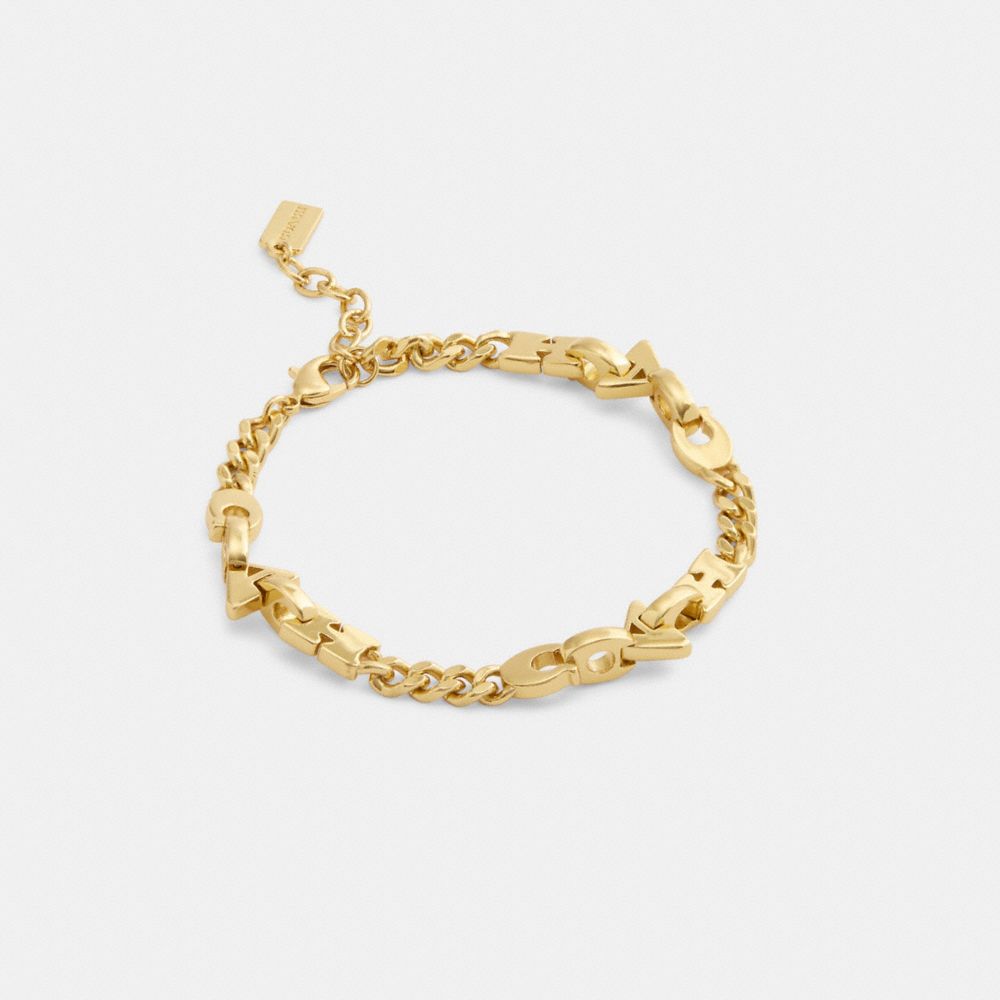 Look closely, this curb chain bracelet features our name in stacked chunky charm letters for effortless Coach style. It’s finished with an adjustable clasp.