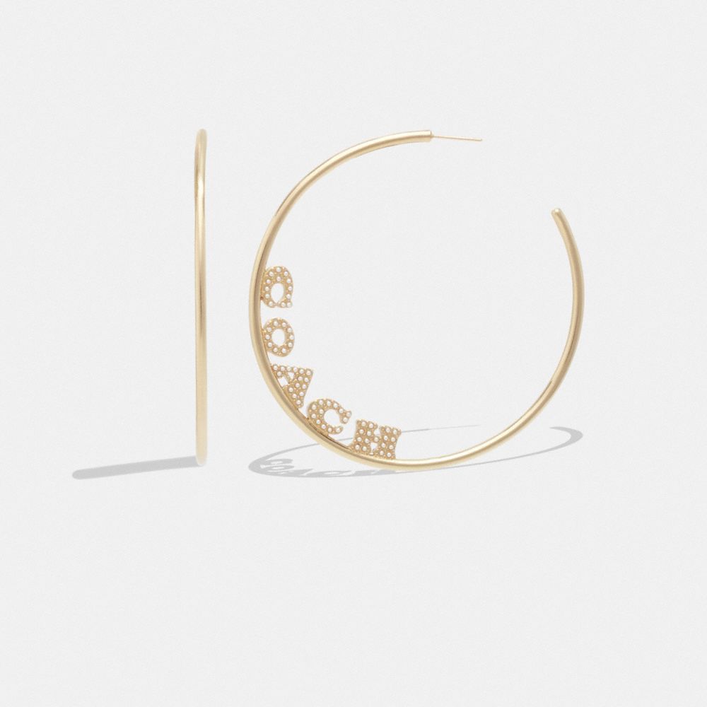 Both playful and put together, these medium hoop earrings are detailed with our name in luminous glass pearls for a sophisticated touch.