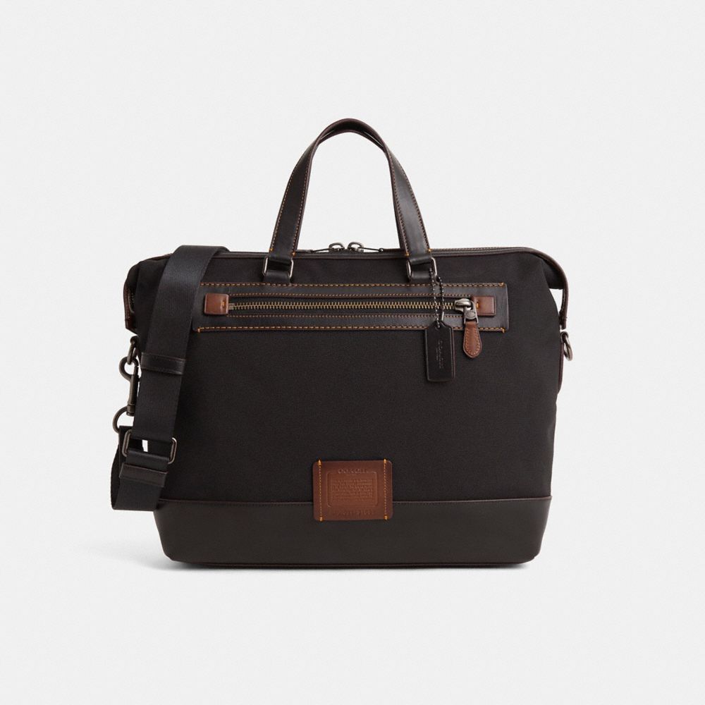 Academy is designed for adventures far and near. The lightweight Holdall has a well-organized interior for business needs, space for a 15" laptop and expands with side snaps to hold sneakers, shirts and more. Finished with refined leather trim, it's crafted of CORDURA® fabric, a durable material that is resistant to tears, scuffs and abrasions.