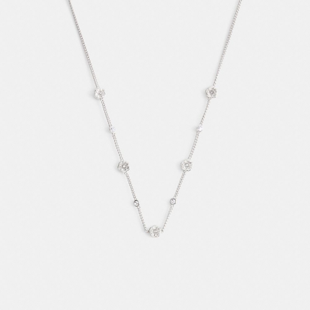 This polished station necklace is accented with our Tea Rose motif and sparkling crystals. Detailed with our diminutive hangtag and Signature charm, it’s finished with an adjustable clasp closure to wear long or short.