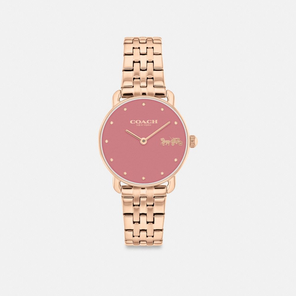 With clean lines and a modern minimalist sensibility, the Elliot is a true design classic ready for workdays and weekends. This rose gold tone bracelet watch features a dial detailed with dome markers and our iconic Horse and Carriage motif at 3 o’clock for a heritage touch.