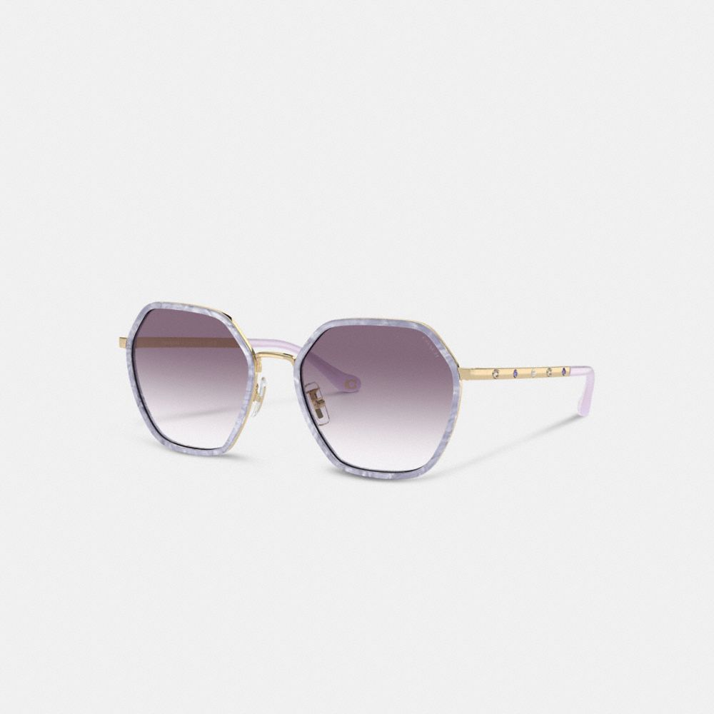 An elegant style for everyday, these metal hexagon frames feature a pretty pearlized finish and a plaque at the temple detailed with jewel accents and our Signature for a heritage touch. Offering full UV protection, they’re finished with adjustable nose pads for a personalized fit.