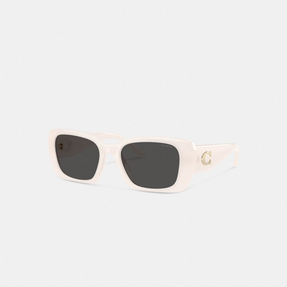 A luxe design, these rectangle sunglasses are finished with our oversized polished C hardware for bold heritage style. Featuring 100% UV protection lenses, the sleek, full-coverage style comes packaged in a Coach case with a microfiber cleaning cloth.