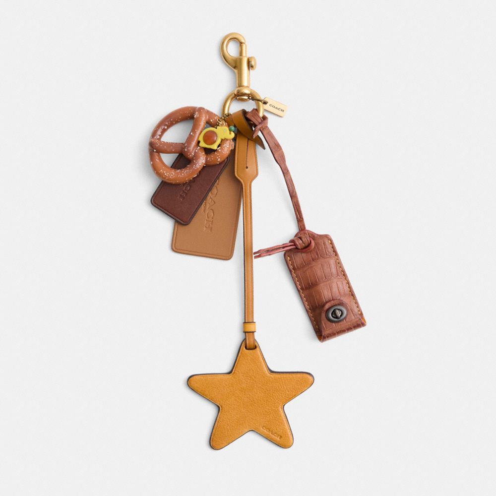 Who says you can’t teach an old bag new tricks? This very special Coach Remade design is crafted of raw materials salvaged from pre-owned bags at our Coach Repair Workshop to create something completely new. Maximizing the life of our leather—and minimizing landfill waste—this one-of-a-kind Cluster Bag Charm adds a playful Coach touch to your bag. Featuring leather hangtags, a luxe crocodile leather key hood, a delicious pretzel charm and our Remade star bag charm, it reflects our commitment to rethinking and reducing our impact on the planet. (And proves that some things are even better the second time around.)