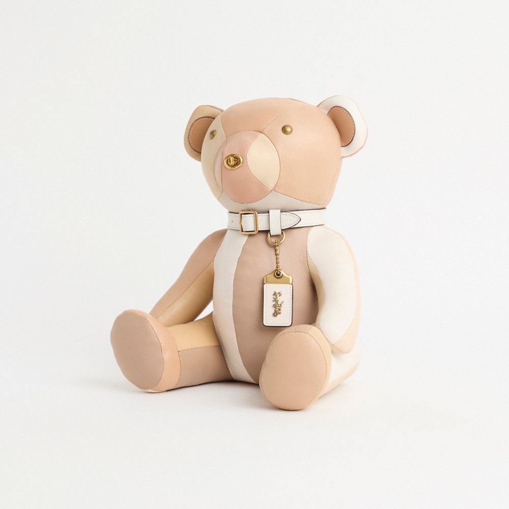 Who says you can’t teach an old bag new tricks? This very special Coach Remade design is crafted of raw materials salvaged from pre-owned bags at our Coach Repair Workshop to create something completely new. Maximizing the life of our leather—and minimizing landfill waste—this one-of-a-kind adorable Bear is lovingly made from 100% repurposed materials and reflects our commitment to rethinking and reducing our impact on the planet. Stuffed with shredded bag linings, fillers and remnants, this collectible to treasure is accented with reconditioned dome rivet eyes, a repurposed iconic turnlock closure at the nose, a refurbished hangtag at the collar and is finished with hand-laced baseball stitching at the back in a nod to our baseball-inspired heritage. (And proves that some things are even better the second time around.)