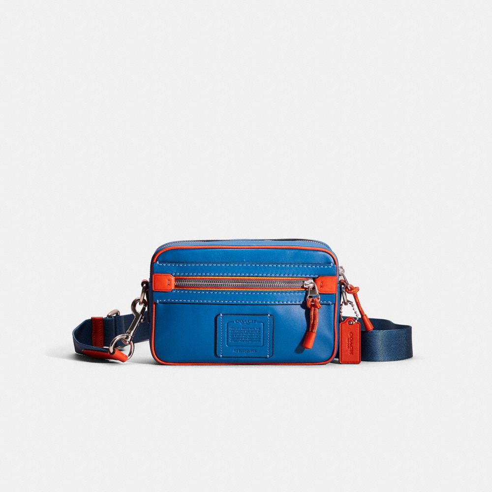 Academy is designed for adventures far and near. This hands-free crossbody keeps you organized with space for a wallet, keys, phone and more. Crafted of smooth leather featuring our sporty Varsity Stripe on the zip closures, its outside pockets offer easy access to ID, tickets, cards, phone and more.