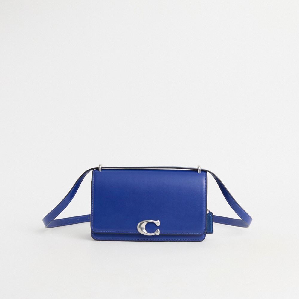 Crafted of luxe refined leather with a high shine finish, the Bandit is detailed with a flap front and our C pushpin closure. It features two organized compartments, a secure interior snap pocket and a shoulder strap that adjusts for crossbody wear.
