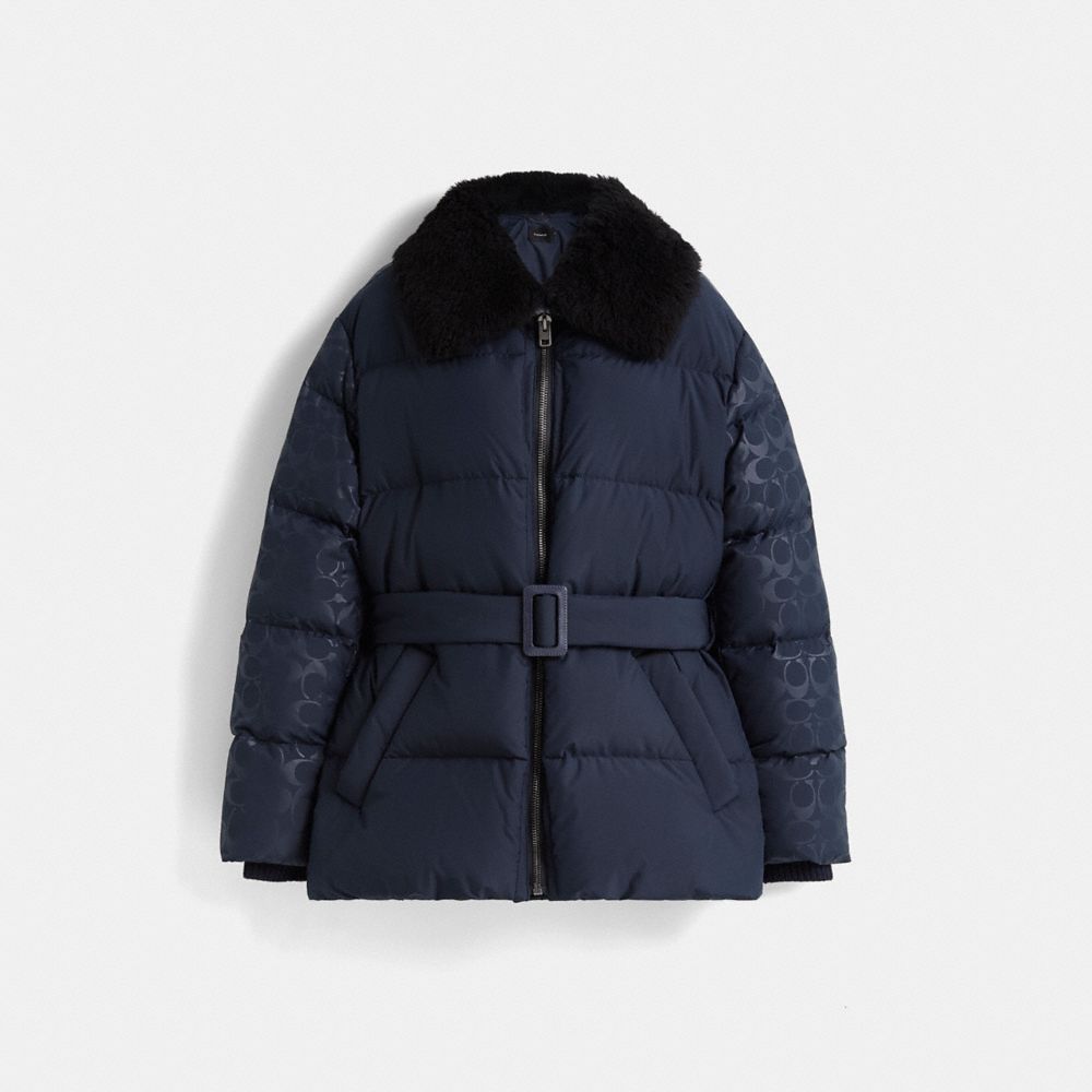 Add some Signature style to chilly days, this lightweight puffer features a luxurious plush shearling collar and our Signature on the sleeves. It’s finished with a waist-defining adjustable belt, soft ribbed cuffs, and an inside zip pocket to secure small essentials.