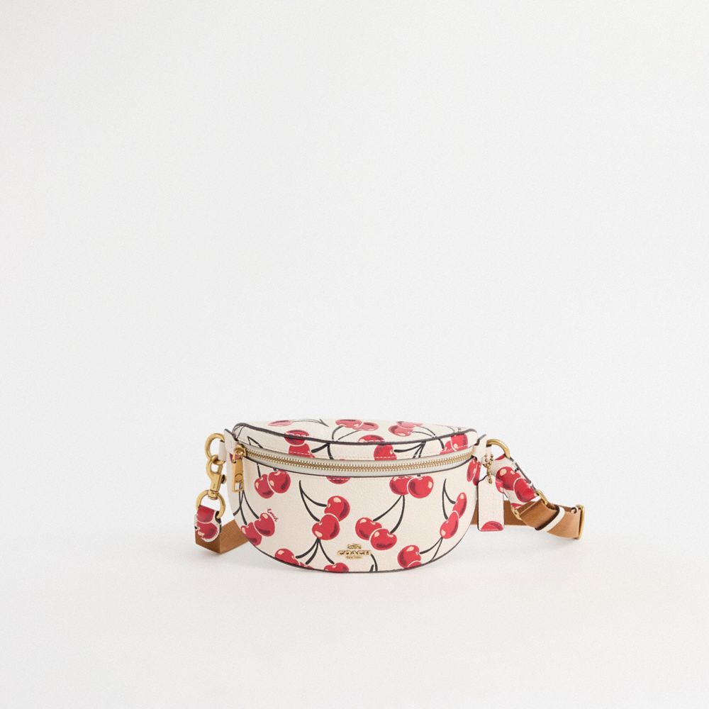 An update of a street-ready design, the ultra-convenient Bethany Belt Bag keeps your hands free and essentials organized. Crafted of polished pebble leather featuring a cheerful cherry print, wear it cinched at the waist, over the shoulder or draped crossbody for a versatile look.
