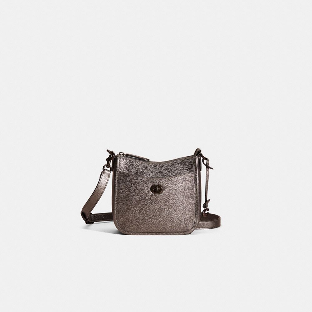 COACH®,Restored Chaise Crossbody 19,Crossbody,Metal,Logo,Compact,Silver Metal,Casual,Metallic,Gray,Front View