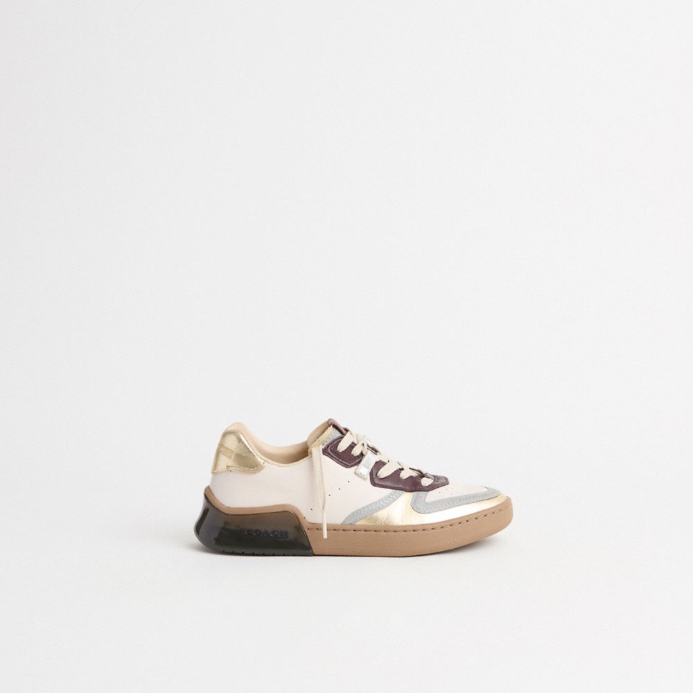 Built for the urban obstacle course, our lightweight Court sneaker is made with proprietary Coach CitySole technology for maximum comfort and flexibility. Based on traditional basketball shoes, this Court silhouette sits at the intersection of fashion and function. Crafted of smooth leather, it features 3M binding on the upper and a transparent heel with shock-absorbing cushioned pods that provide all-day support. It's finished with a grooved sole for superior movement and traction. Your feet will thank you.