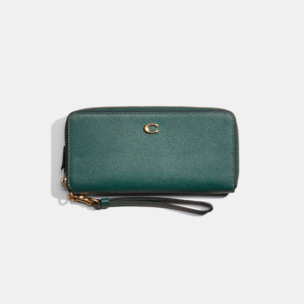 A timeless style made modern with a detachable wrist strap, this scratch-resistant crossgrain leather wallet has a continental zip-around closure and an elongated shape. The organized design has extra room for a phone and other small essentials.