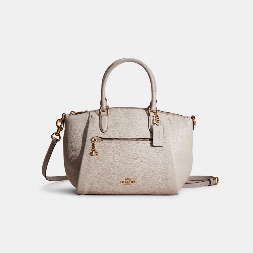Based on a best-selling Coach design, the Elise satchel is crafted of polished pebble leather. It has a convenient exterior zip pocket accented with a Signature charm and interior pockets to keep everything organized.