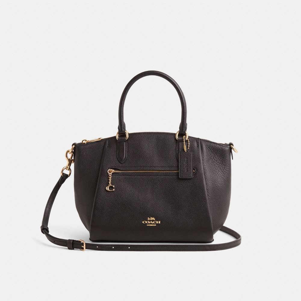 Based on a best-selling Coach design, the Elise satchel is crafted of polished pebble leather. It has a convenient exterior zip pocket accented with a Signature charm and interior pockets to keep everything organized.