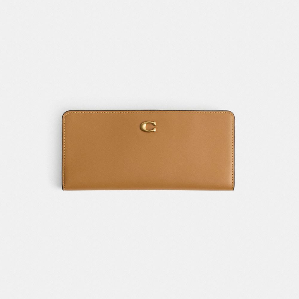 Crafted of refined leather detailed with our Signature hardware, the perfectly named Slim Wallet organizes essentials in a slender silhouette. Featuring an exterior zip pocket for coins, receipts, earbuds and other small essentials, the snap closure opens to reveal 12 card slots and multiple full-length bill compartments for easy organization.