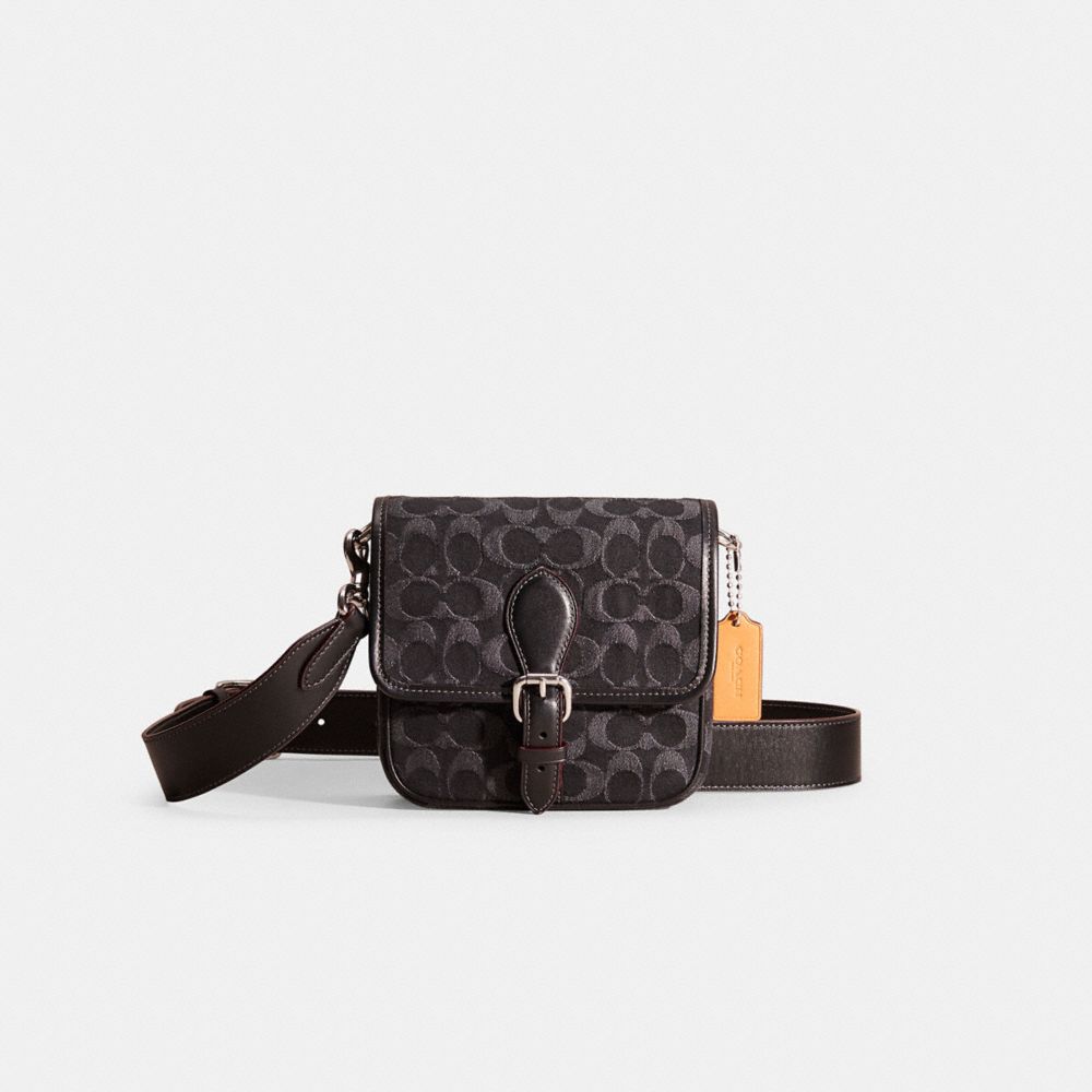A well-organized, hands-free style, the compact Frankie crossbody has room for your phone, wallet, keys and more. Crafted of our black Signature denim and refined leather, it’s finished with a buckle-detail magnetic closure, detachable crossbody strap and an outside pocket.