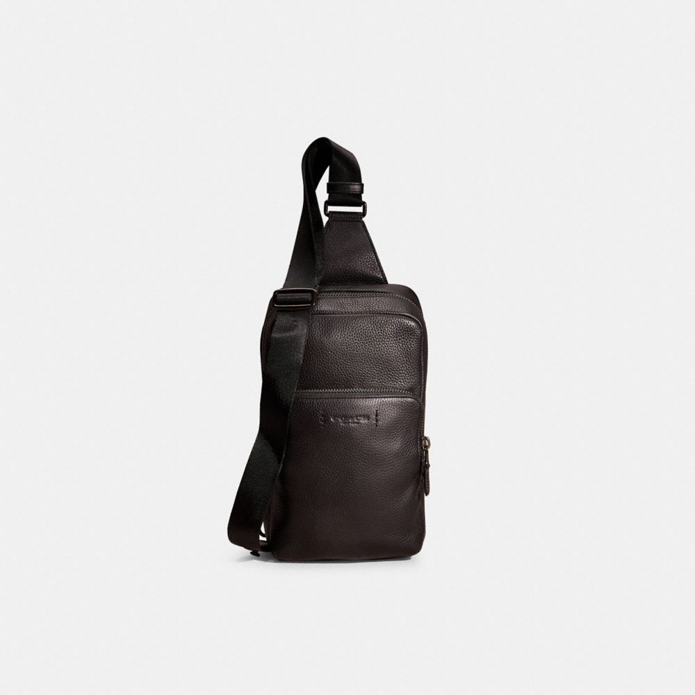 The Gotham pack is a sleek, streamlined style with space to hold an iPad, interior multifunction pockets and two exterior zip pockets. Crafted of polished pebble leather and refined leather, it comes with an adjustable strap for shoulder or crossbody wear.