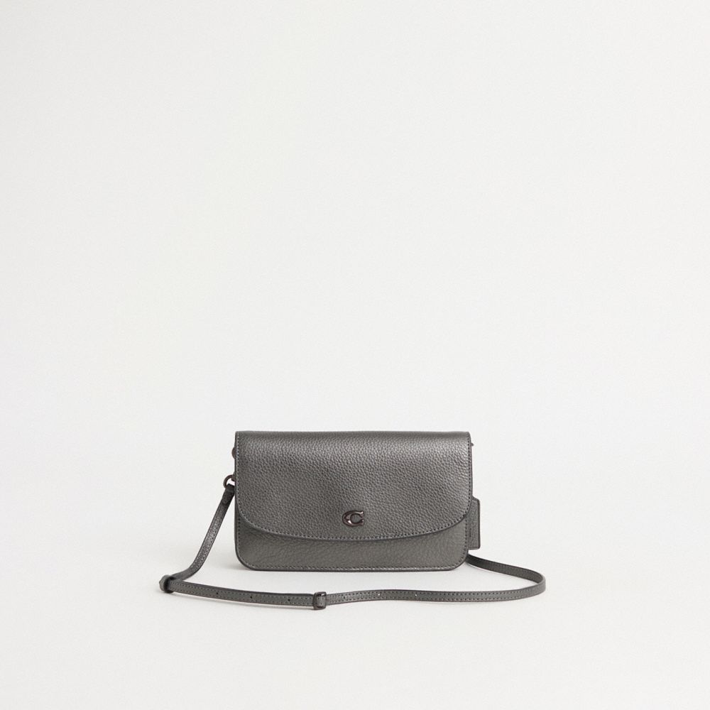 Easy, compact and practical—this perfect grab-and-go bag is crafted of sleek metallic pebble leather. A detachable strap allows you to wear it three ways: on the shoulder, crossbody or carried as a clutch.