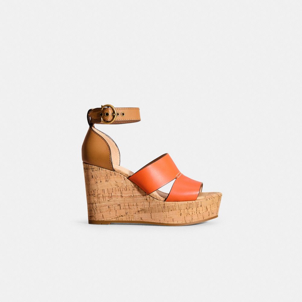Hit new heights with our comfortable Isla wedge sandal. The colorblock leather design is finished with an ankle strap featuring our Coach buckle for a secure fit.