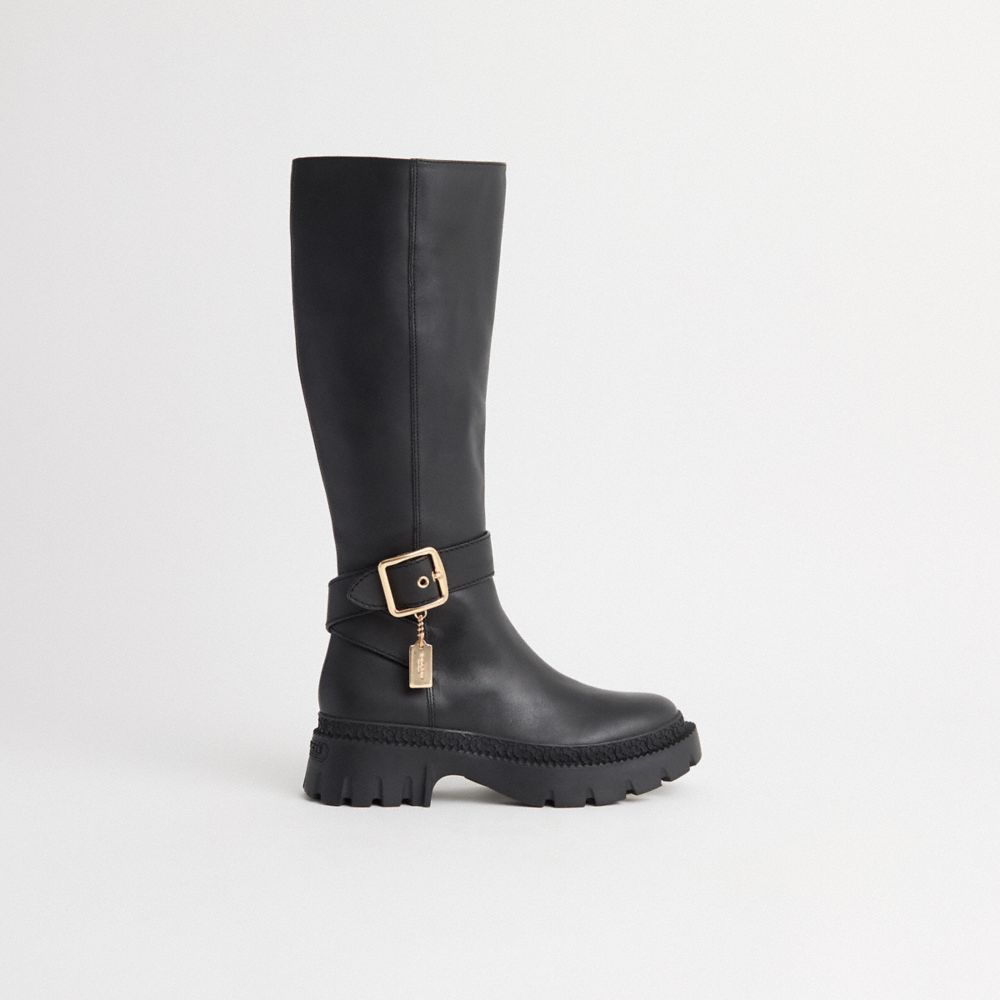 Our James boot is an equestrian-inspired style made modern with a rugged platform lug sole. Featuring cushiony memory foam padding for all-day comfort, the smooth leather style is finished with a mini hangtag charm for an iconic Coach touch.