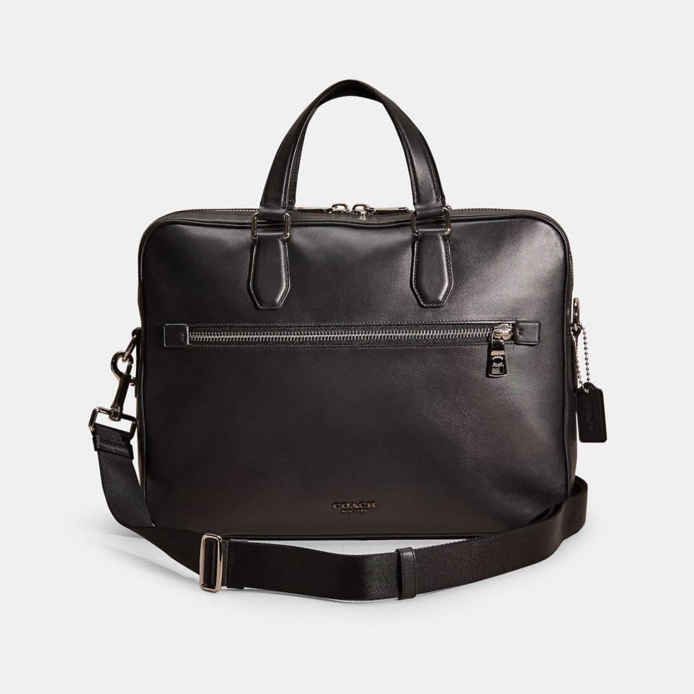 COACH®,Restored Kennedy Brief 40,Leather,Briefcase,Logo,Metal,Work,Black,Front View
