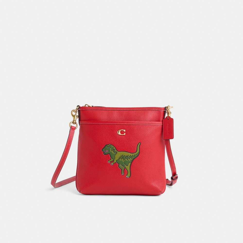 Crafted of polished pebble leather featuring fun-loving Coach mascot Rexy front and center, the Kitt Messenger is a versatile crossbody perfect for weekends or travel. An exterior pocket gives easy access to essentials.