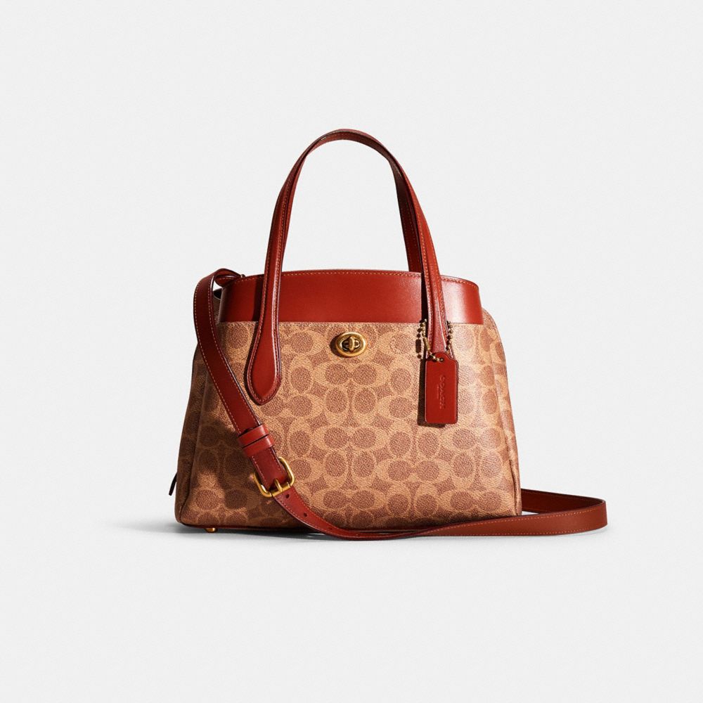 Our petite Lora Carryall 30 is versatile, practical and extremely good looking. This Signature canvas and refined leather design has three interior compartments and an exterior slip pocket. It secures with our iconic turnlock closure.