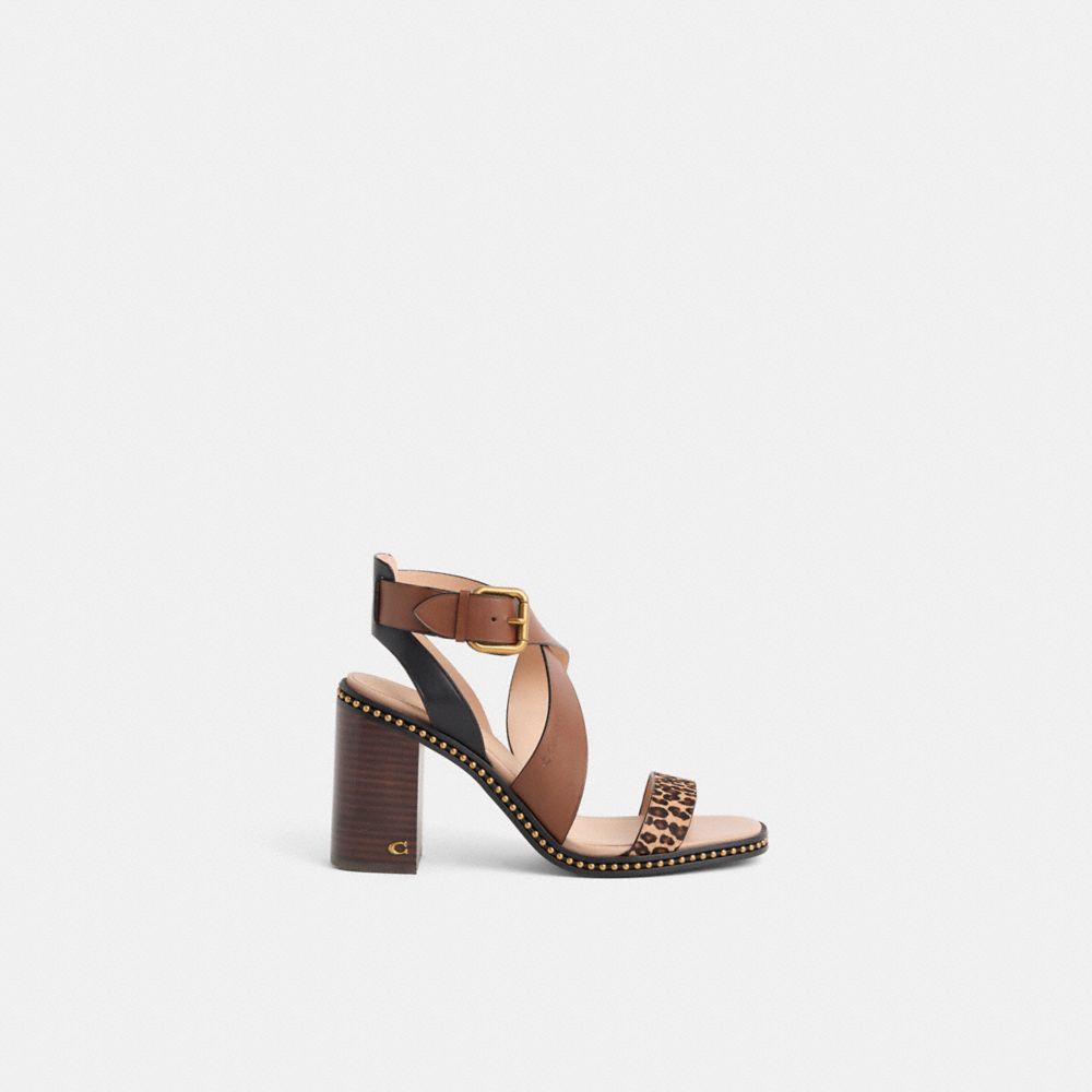 With a walkable block heel and crisscross straps, the Mandy sandal is a versatile option for day or night. Crafted of colorblock leather and exotic animal-print haircalf, it's finished with our gleaming beadchain trim for a touch of shine.