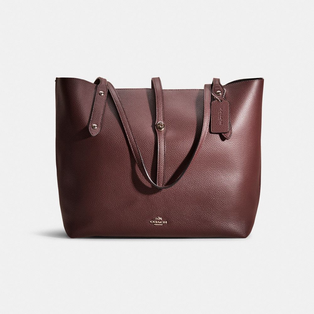 An iconic Coach silhouette since the early 1960s, our Market Tote is crafted of polished pebble leather, has an interior zip pocket and secures with a slender strap and a Signature turnlock.