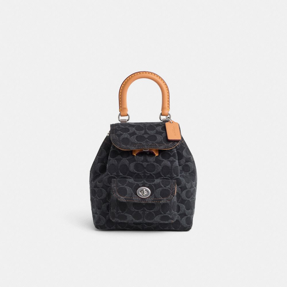 A grown-up take on sporty style, our Riya backpack is a sophisticated, hands-free design. Finished with our Rogue luggage top handle and Signature turnlock closure, it’s crafted of our laid-back light-wash Signature denim with glovetanned leather details and features a convenient exterior pocket for easy access to essentials. The interior drawstring and snap closure keep belongings secure, while adjustable shoulder straps ensure comfortable, all-day wear.
