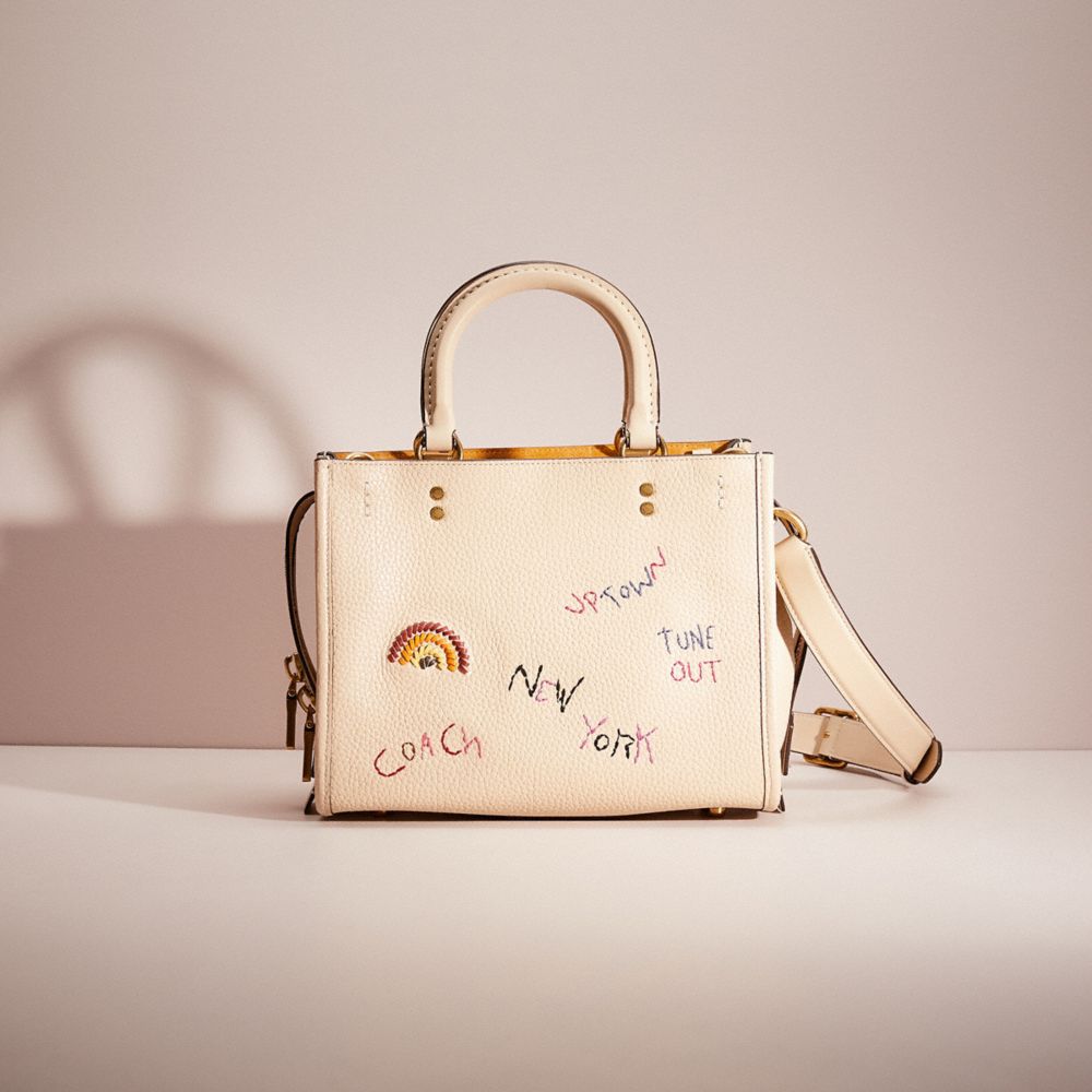 Inspired by free spirits, rebels and dreamers, the aptly named Rogue is a go-anywhere bag. Smaller than the original, the 25 is crafted of glovetanned leather and our naturally dyed pebble leather embroidered with lighthearted symbols, sayings and Coach icons.