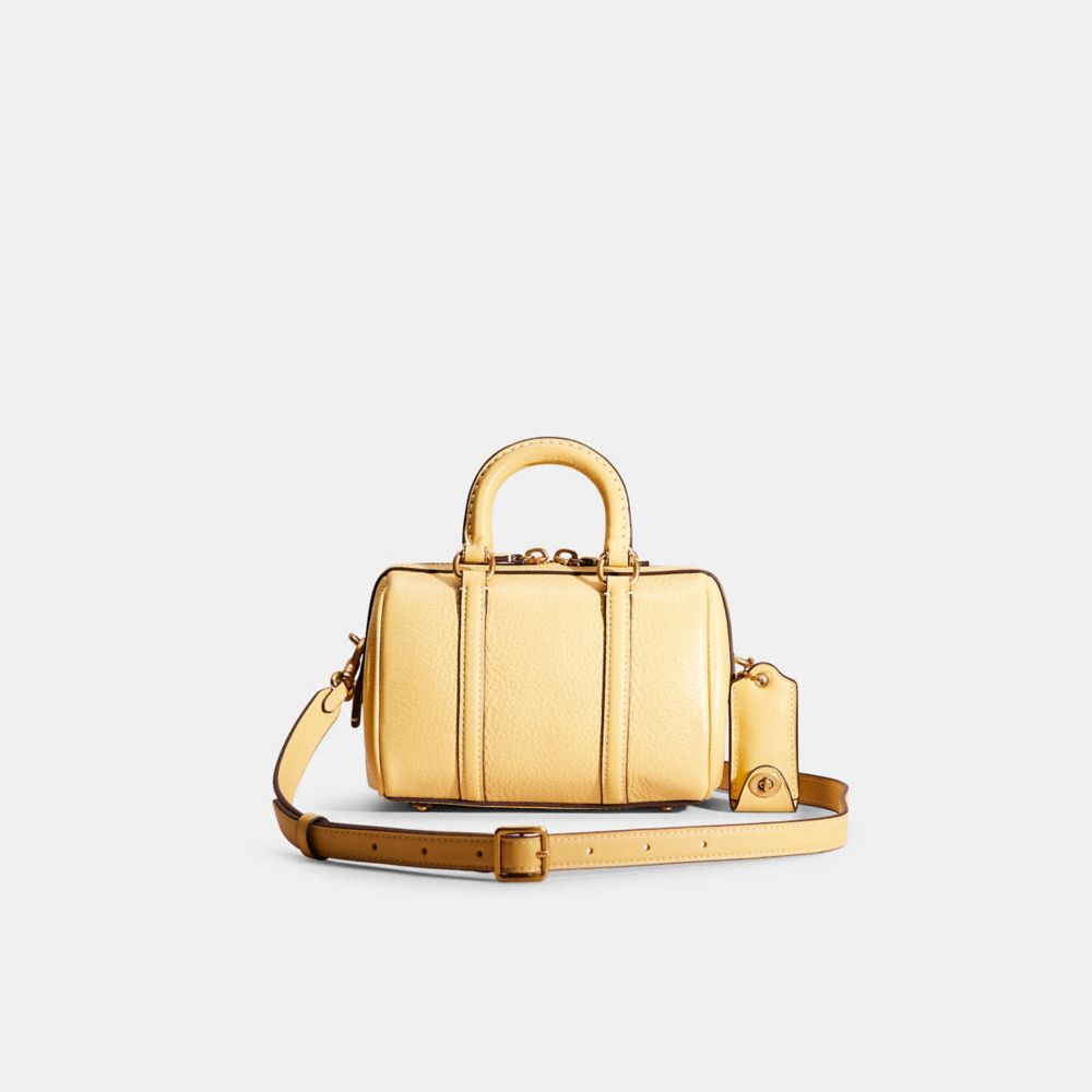 Our Ruby satchel has an iconic rounded shape and an elongated zipper that opens wide. Crafted in a mix of natural pebble leather and buttery soft glovetanned leather, the compact 18 has multifunction pockets. Carry by the luggage handles or attach the crossbody strap for hands-free styling.