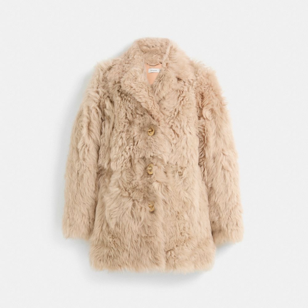 Turn it, lock it, this luxurious single-breasted coat is finished with our iconic turnlock hardware for a heritage touch. Crafted of shaggy curly hair shearling, the stand-out style features a notched lapel and slip pockets.
