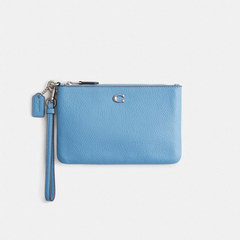 Crafted of polished pebble leather detailed with our Signature hardware, this wristlet is perfectly sized for cards, cash and a phone. Wear it on your wrist or clip it inside a larger Coach bag.