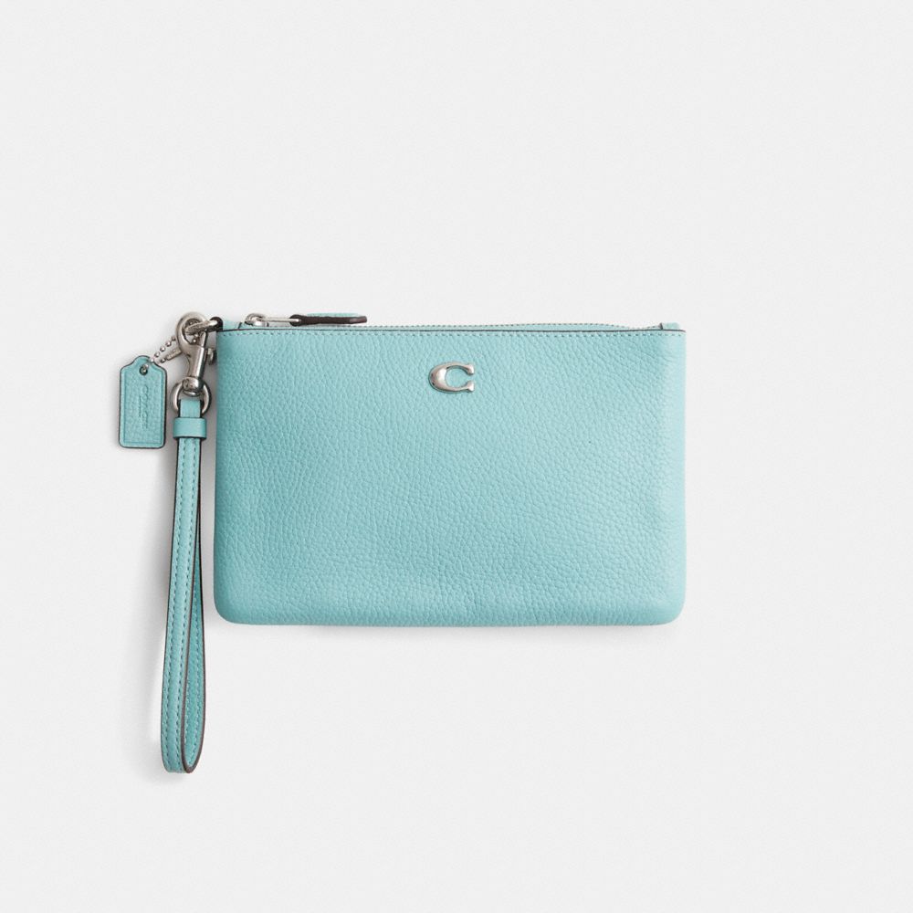 Crafted of polished pebble leather detailed with our Signature hardware, this wristlet is perfectly sized for cards, cash and a phone. Wear it on your wrist or clip it inside a larger Coach bag.