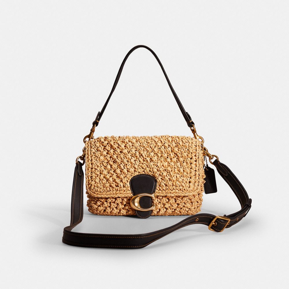 The Soft Tabby reimagines our structured take on an archival 1970s Coach design with a slouchy relaxed feel. Finished with our Signature hardware, this smooth leather and woven straw shoulder bag features zip pockets inside and out to organize small accessories.
