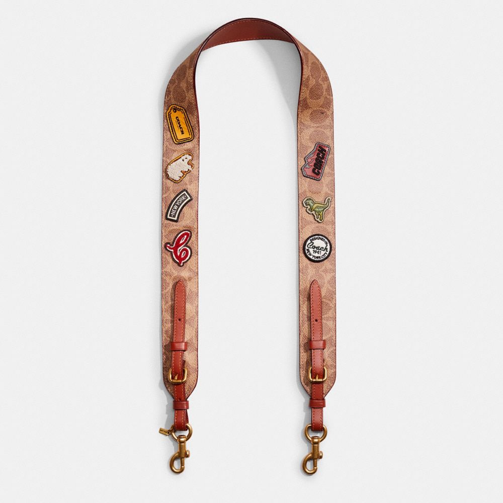 Instantly update your bag with this Signature canvas and refined leather strap featuring our whimsical alpine-inspired Coach patches. The interchangeable style features two dogleash clips that allow you to attach it to our most popular styles.