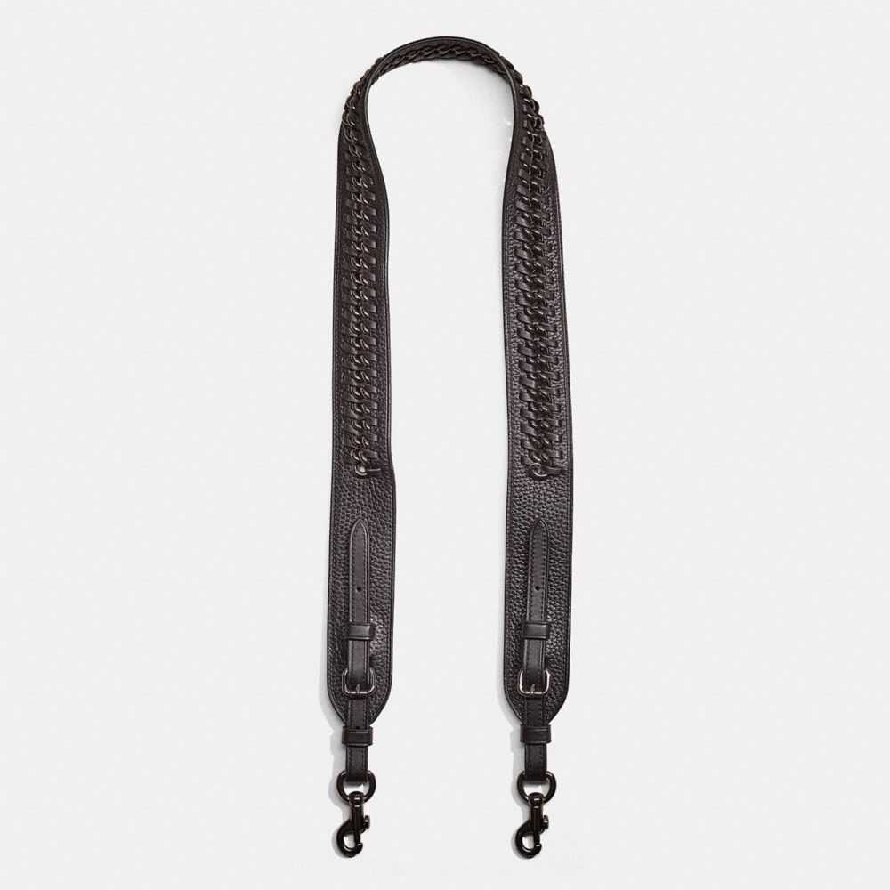 Instantly update your bag with this luxe pebble leather strap with woven chain detail. The interchangeable design features two dogleash clips that allow you to attach it to our most popular styles.