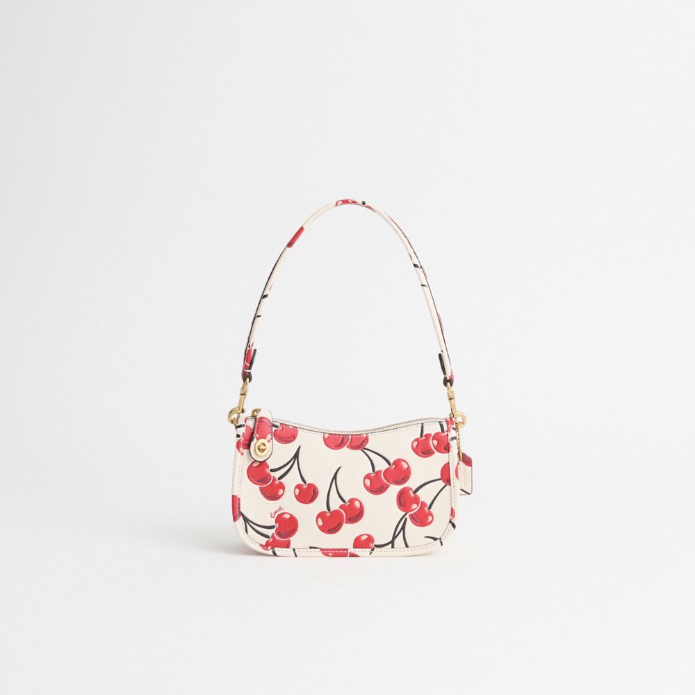 The Swinger 20 Bag is part of The Coach Originals, a collection of archival-inspired bags that celebrates our legacy and authentic New York heritage. Printed with a cheerful cherry motif, this streamlined polished pebble leather style is based on a 1980s Coach design reimagined for today. Featuring our iconic turnlock closure, the petite bag sits just beneath the underarm with the short-strap or it can be carried as a clutch.