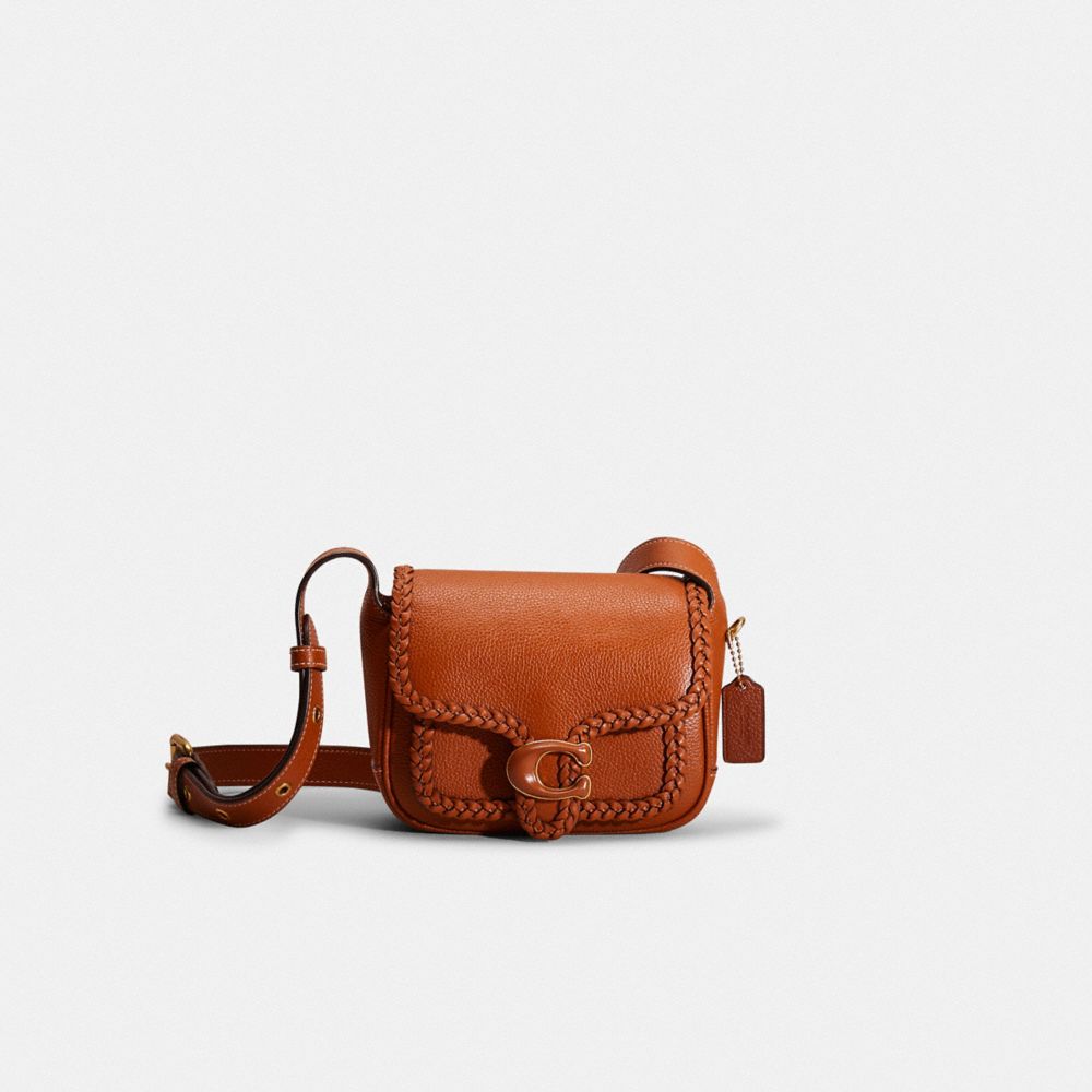 Crafted in a mix of polished pebble leather, refined leather and smooth leather, our Tabby Messenger 19 is a modern take on an archival 1970s Coach design. Finished with our Signature hardware, the compact bag has an interior snap and zip pockets and an outside pocket. The wide adjustable crossbody strap is detailed with hand-braided leather trim.