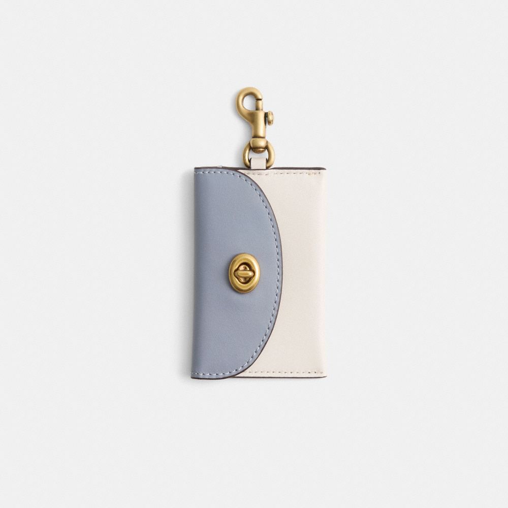 Crafted of colorblock refined leather, our Card Case Bag Charm is a minimalist design featuring our iconic turnlock closure and a dogleash clip to attach your bag or belt loop.