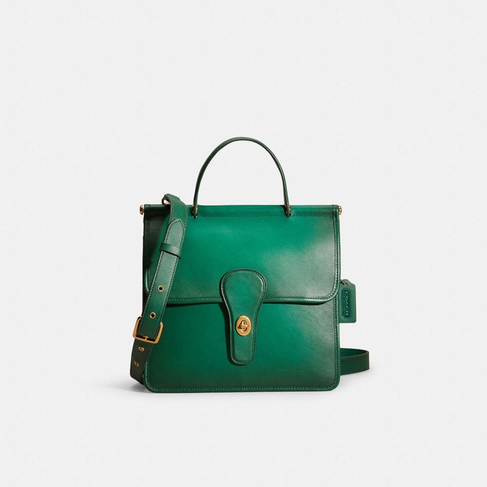Based on an archival Coach silhouette, our buttery soft glovetanned leather Willis features a dowel frame and secures with a turnlock closure. Carry by the top handle or the detachable crossbody strap.
