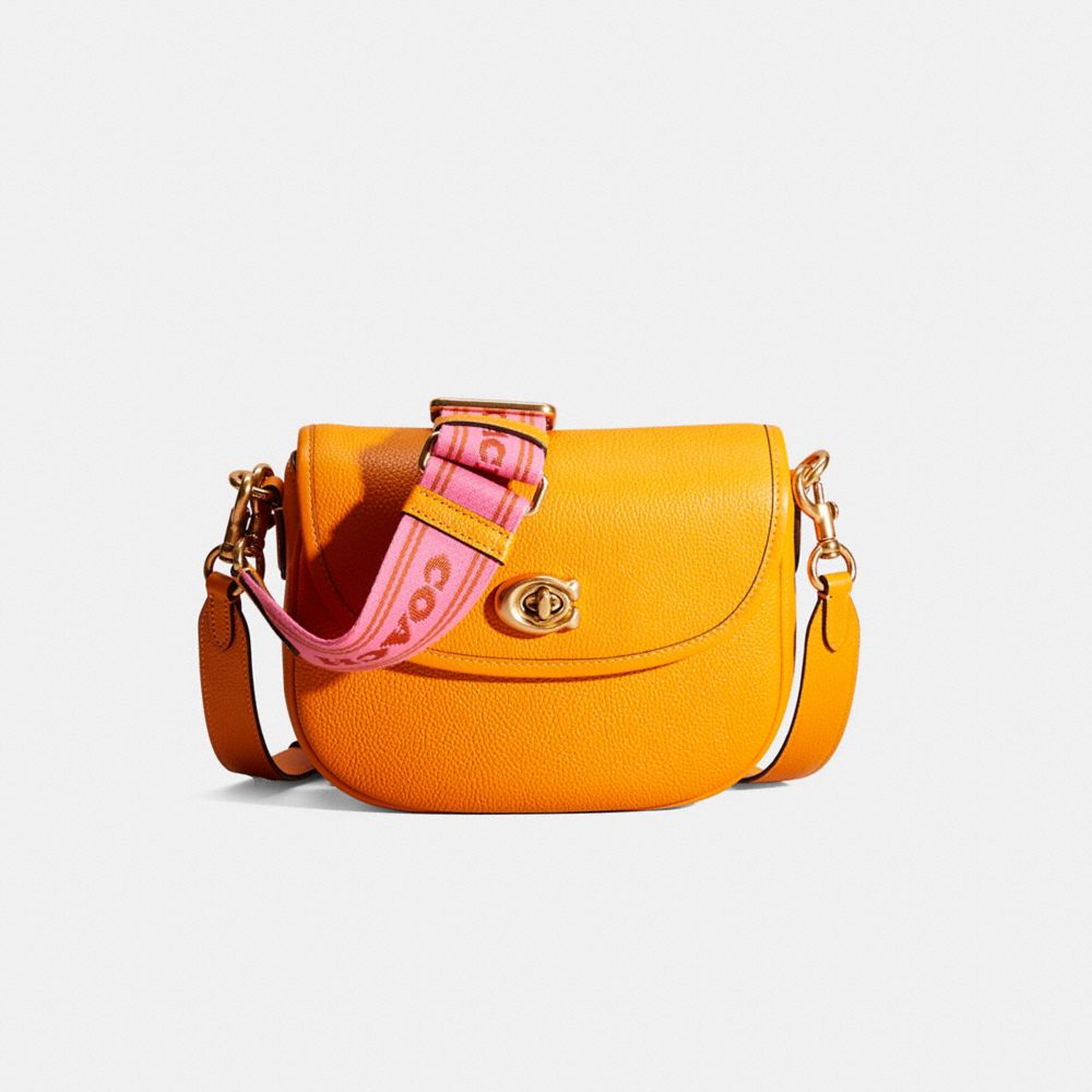 The Willow Saddle is an equestrian-inspired style with space for all of the essentials. The polished pebble leather design secures with our Signature turnlock and is finished with interchangeable straps for versatile styling.