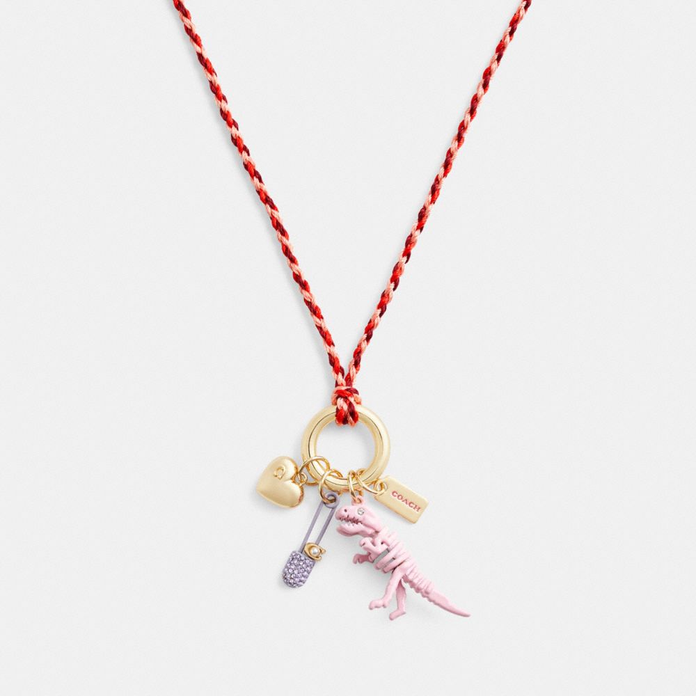 Strike a cord. A 1990s-inspired design, this necklace features a collection of playful Coach charms. It’s finished with an adjustable slide closure.