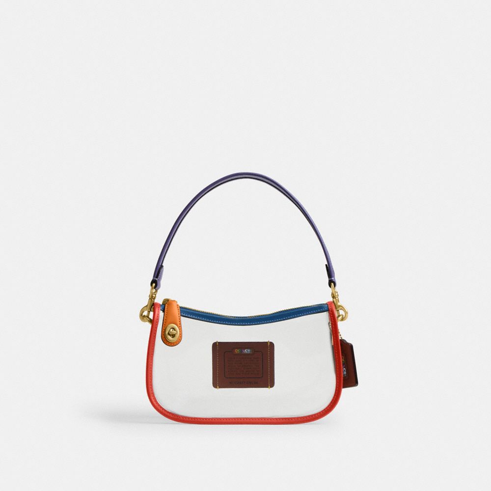 Perfect for concerts, festivals, sporting events and more, this stadium-friendly clear Swinger Bag meets venue security standards with space for all the essentials. Part of The Coach Originals, a collection of archival-inspired bags that celebrates our legacy and authentic New York heritage, this streamlined clear PVC and smooth leather style is based on a 1987 Coach design reimagined for today. Featuring our iconic turnlock closure, the zip-top design has a short shoulder strap to sit just beneath the underarm and a rainbow striped webbing crossbody strap for versatile wear or detach the straps and use as a pouch. Some styles are just too good to leave in the archives.