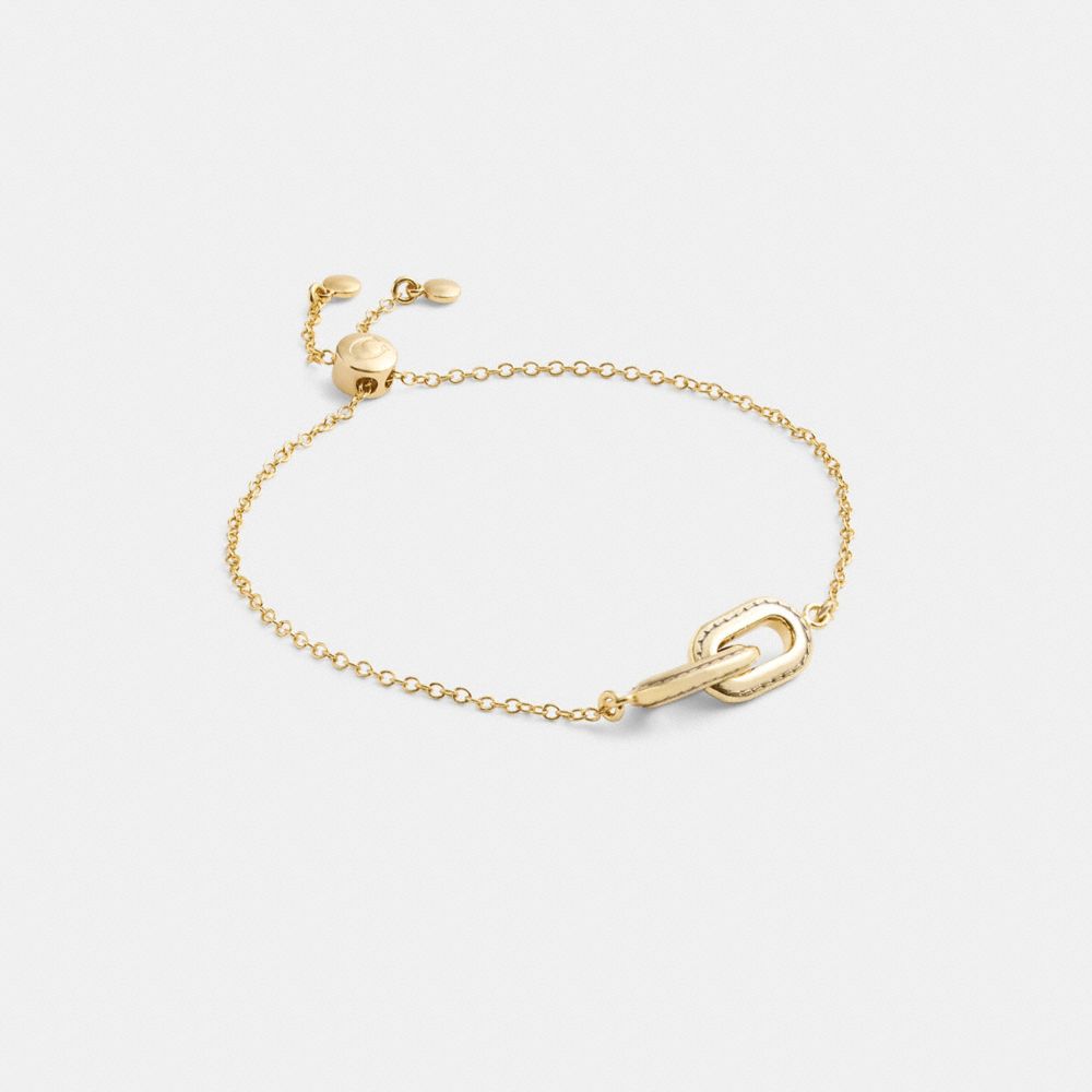 This delicate bracelet features a striking stitched chain link reinterpreted from our handbags. It’s finished with a slide closure that adjusts to fit most wrists.